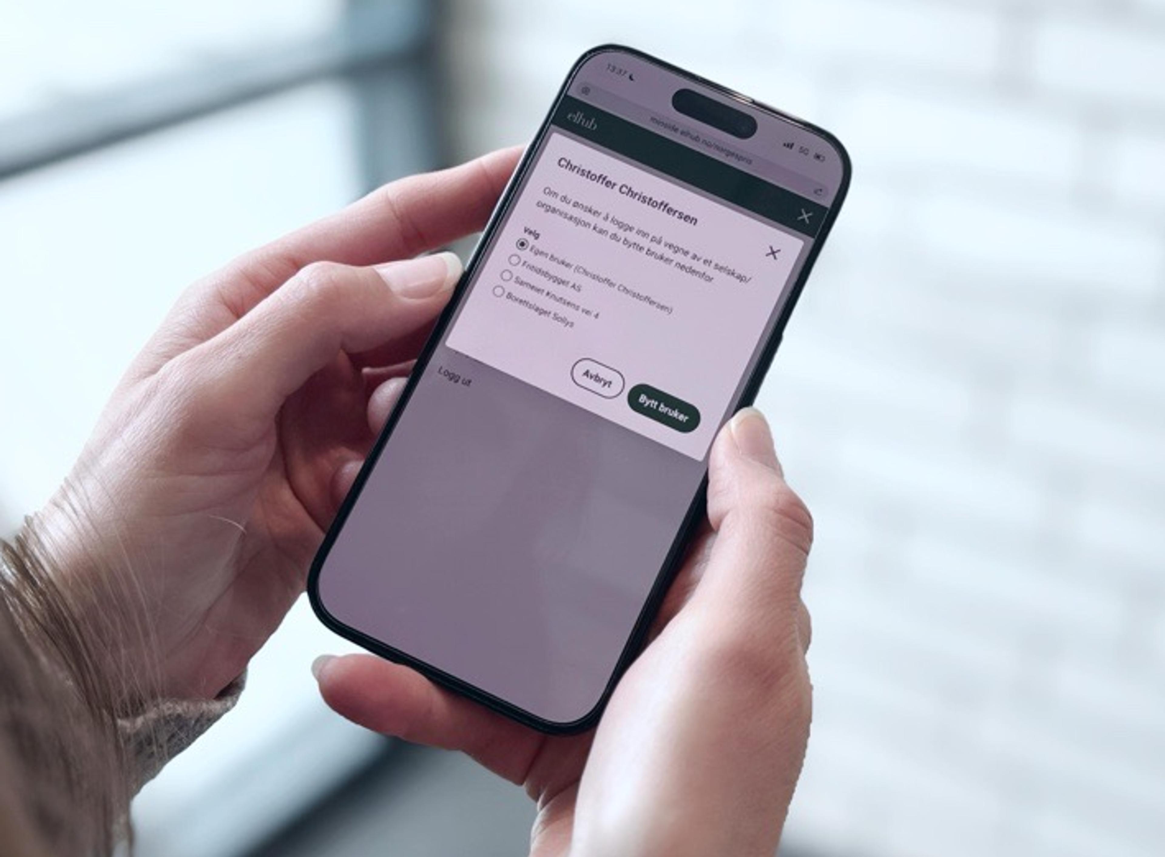 Klikk på Bytt bruker i menyen for å bytte mellom privat- og bedriftsvisning.